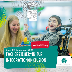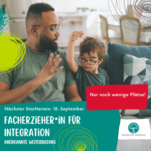 Nur noch wenige Restplätze! Unsere Weiterbildung zum/zur Facherzieher*in für Integration/Inklusion startet wieder am 18. September.