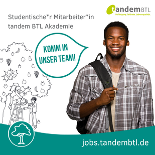 Wir suchen eine*n studentische*n Mitarbeiter*in (w/m/d) (bis 15h/Wo) für unsere tandem BTL Akademie in Berlin Schöneberg.