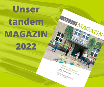 In der siebten Ausgabe unseres tandem MAGAZINs liegt unser Schwerpunkt auf Treptow-Köpenick, wo wir seit 2021 viele neue Kooperationen in der Schulsozialarbeit haben – und seit einigen Jahren einen Standort der Ambulanten Hilfen. Die Kolleg*innen berichten über ihre viefältige Arbeit im Bezirk – und wie sie an den neuen Schulen die Angebote und Strukturen der schulbezogenen Jugendarbeit etabliert haben.