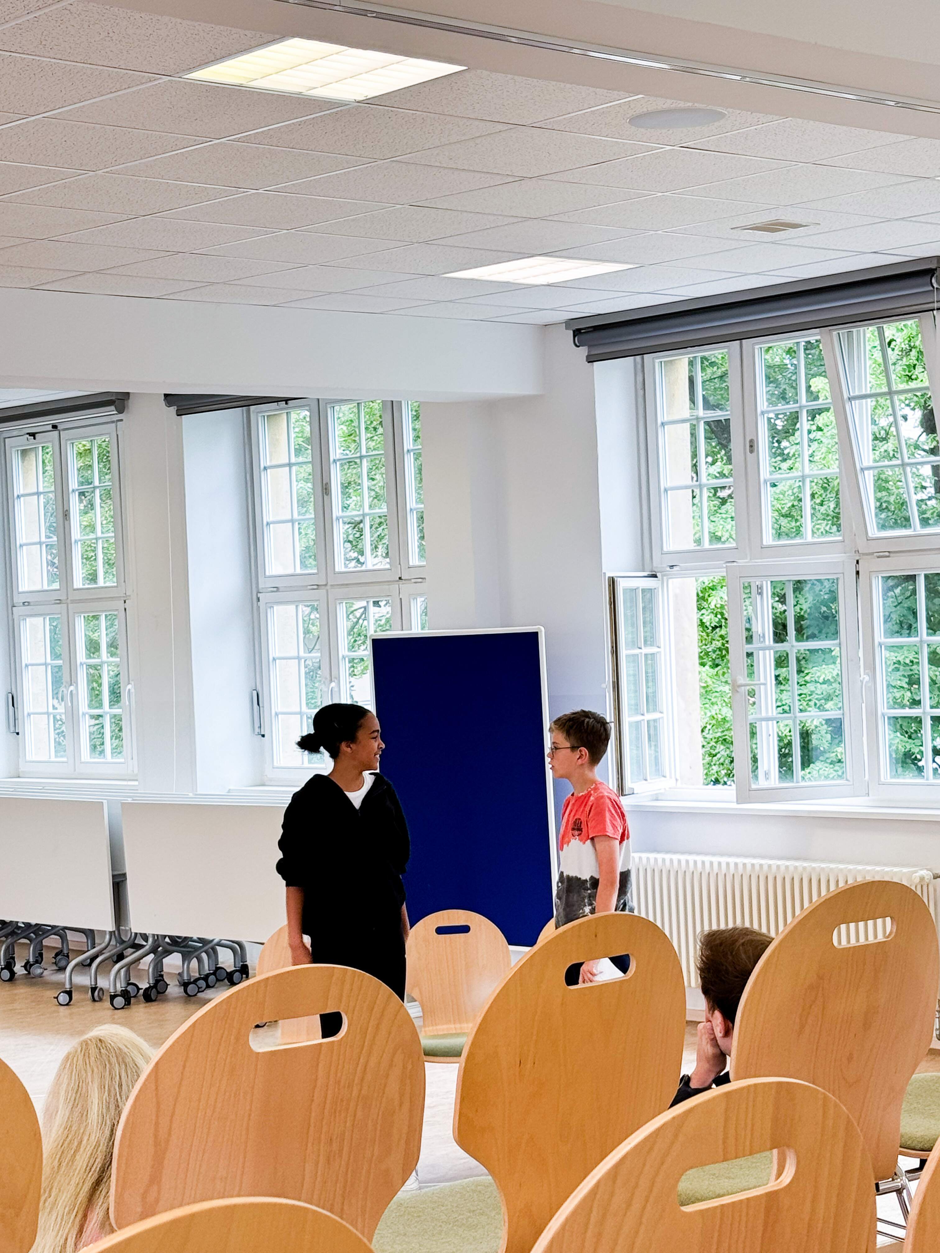 Unter der Anleitung des Projektteams, bestehend aus Wendy Kamp, Sebastian Achilles und Robert Neumann wurden die Rollen sorgfältig verteilt, um sicherzustellen, dass jedes Kind die Möglichkeit hatte, seine*ihre Stärken zu zeigen und sich aktiv in das Projekt einzubringen. Gemeinsam spielten sie eine Klasse, die entdeckt, dass es Konflikte innerhalb der Gruppe gibt und diese Ungerechtigkeiten aufarbeitet. Dadurch wurde den Schüler*innen nicht nur theoretisches Wissen vermittelt, sondern auch praktische Handlungsmöglichkeiten aufgezeigt, die sie selbst in ihren Alltag integrieren können.