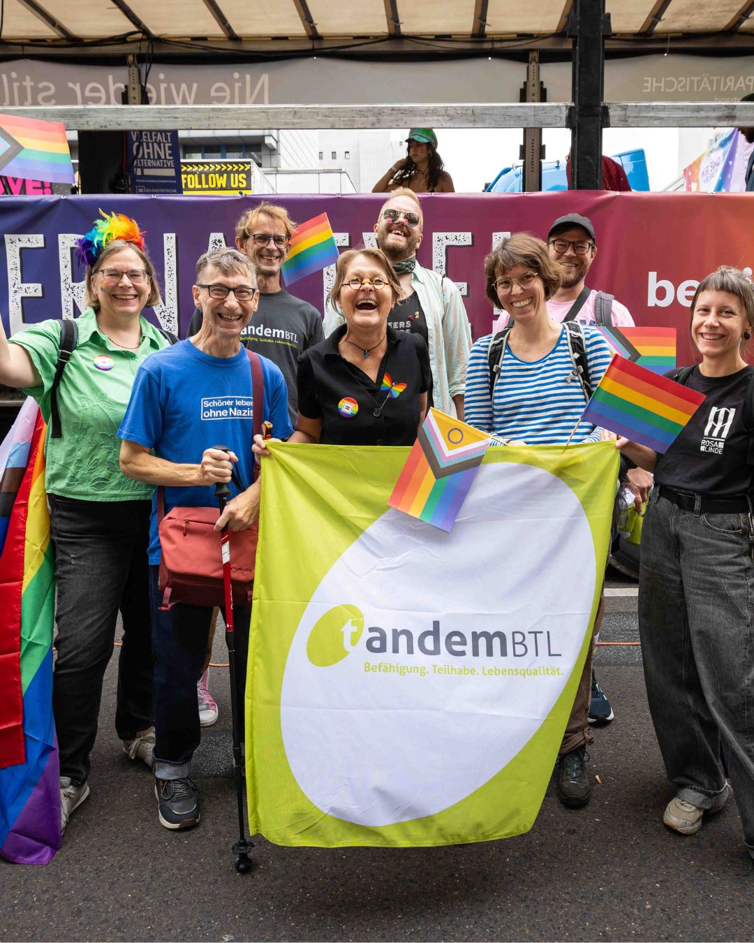 Die Teilnahme am CSD ist für uns Teil eines langfristigen Engagements. Bereits vor einigen Jahren hat tandem BTL die Charta der Vielfalt unterzeichnet. Diese Arbeitgeber*inneninitiative verfolgt das Ziel, ein wertschätzendes und inklusives Arbeitsumfeld für alle zu schaffen – unabhängig von Alter, ethnischer Herkunft, Geschlecht, sexueller Orientierung, Religion, Weltanschauung, körperlichen oder geistigen Fähigkeiten oder sozialer Herkunft.